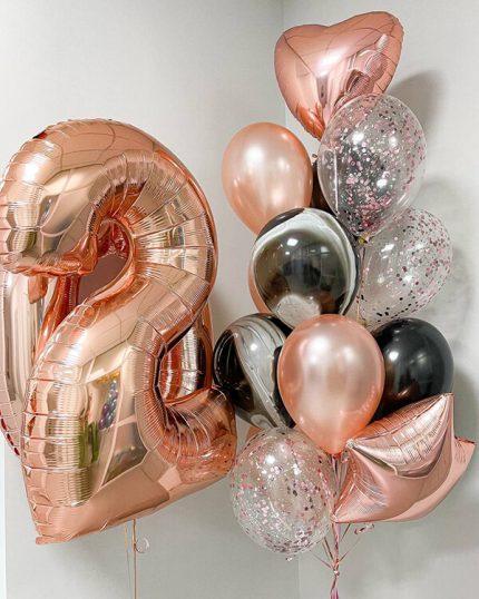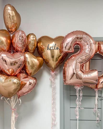 Воздушные шары розового золота могут быть использованы как основной элемент декора или как дополнительный акцент. Они могут быть различных форм и размеров — от классических круглых до оригинальных фигурных.