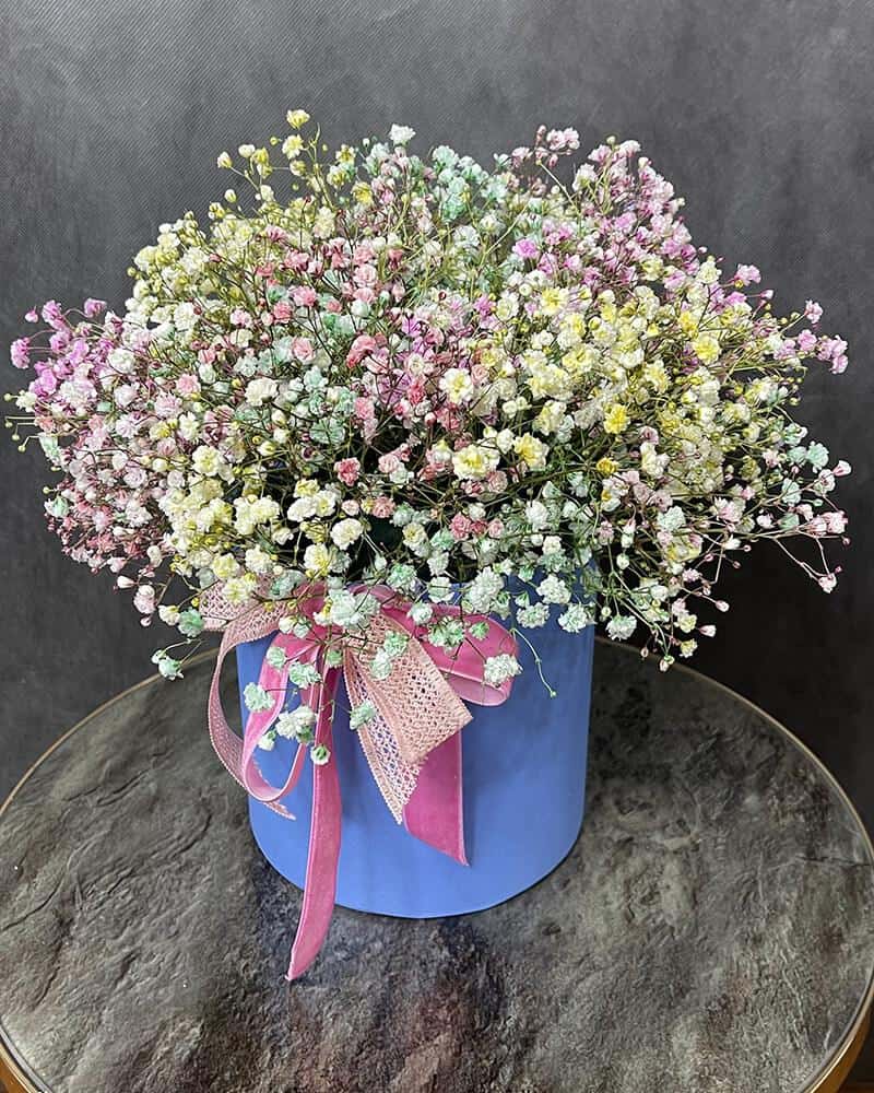 Главная страница » Магазин » Товары на праздник » Цветы » Цветы в коробке » Коробка с гипсофилой